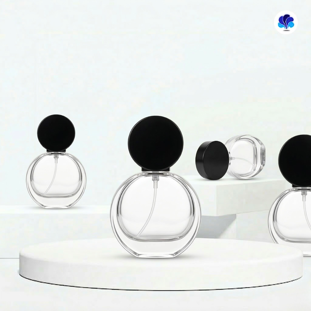 Botol Pump Serum Tutup Bulat Hitam Mewah Material Kaca Premium 30 ml 50 ml 100 ml
